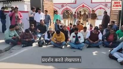 VIDEO : गिरफ्तारी के विरोध में कोतवाली गेट पर लेखपालों का धरना