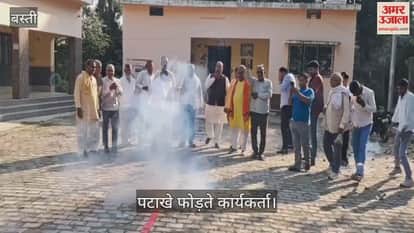 बिहार में भाजपा की जीत पर भाजपाइयों ने फोड़े पटाखे, दी बधाई