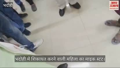 VIDEO : भदोही में कैमरे वाली शिकायतकर्ता, नेता के सामने माइक लगाकर रोई महिला देखें वीडियो
