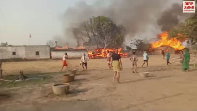 VIDEO : ब्लास्ट हुआ सिलेंडर, घर की छत फटी, दर्जनों रिहायशी मड़हे खाक; महिला ने ऐसे बचाई जान