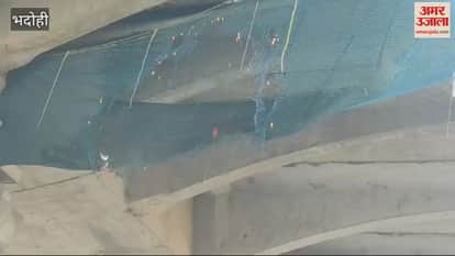 VIDEO : गोपीगंज फ्लाईओवर के पिलर 24 की सेफ्टी जाली में लगी आग
