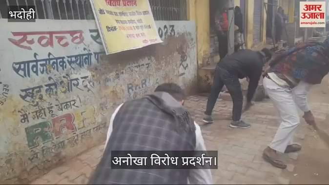 VIDEO : भदोही में सभासदों की गांधीगिरी, झाडू लगाकर दर्ज कराया विरोध प्रदर्शन, बोले जब तक उनकी मांगे पूरी नहीं होंगी, आवाज उठाते रहेंगे