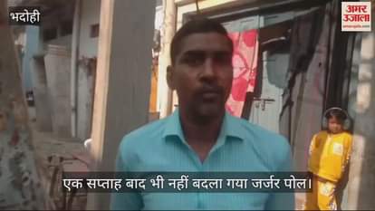 VIDEO : भदोही में जनता नाराज, जर्जर पोल को लेकर आक्रोश, प्रदर्शन कर रखी मांग