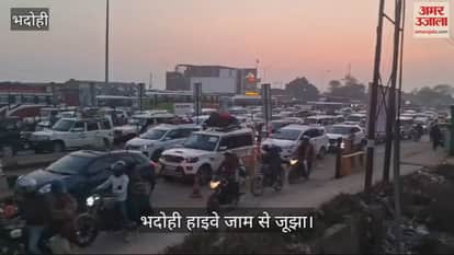 VIDEO : There was a huge jam on Prayagraj Varanasi road on Mahashivratri vehicles were seen crawling on the toll