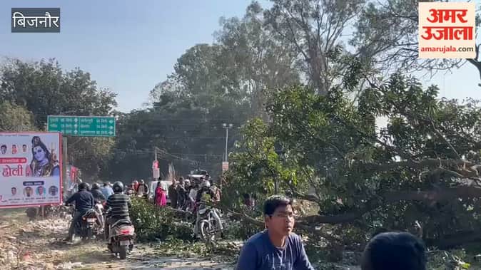 Bijnor: नजीबाबाद-बूंदकी मार्ग पर गिरा आम का विशाल पेड़, बाइक सवार घायल