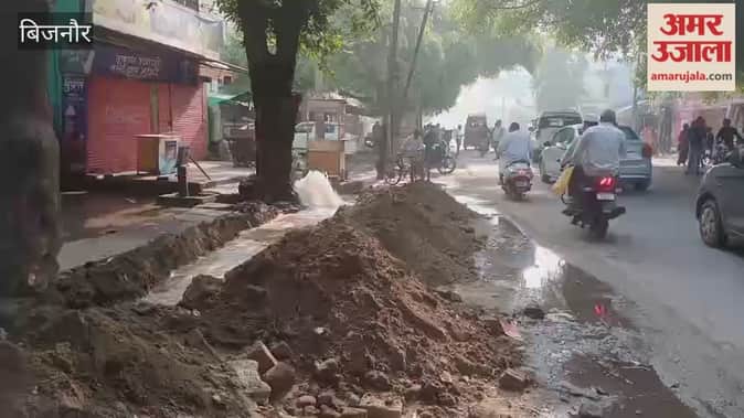 Bijnor: नाला खुदाई में फटी पाइपलाइन, पानी की बर्बादी से लोग परेशान