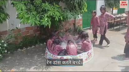 VIDEO : बिजनौर में परिषदीय विद्यालय में बच्चों ने गर्मी में की पूल पार्टी और रेन डांस