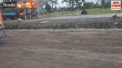 Bijnor: हाईवे पर नलकूप बोरिंग मशीन में लगी भीषण आग, दो घंटे जली मशीन