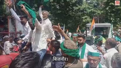 VIDEO : भाकियू की तिरंगा यात्रा में शामिल ट्रैक्टरों ने बिजनाैर पुलिस की बैरिकेडिंग तोड़ी, कलक्ट्रेट में घुसे
