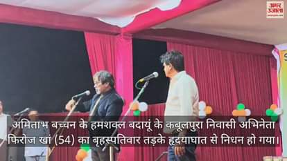 अमिताभ बच्चन के हमशक्ल बदायूं के कबूलपुरा निवासी अभिनेता फिरोज खां (54) का बृहस्पतिवार तड़के हृदयाघात से निधन हो गया। सूचना पर बड़ी संख्या में प्रशंसक उनके घर के बाहर एकत्र हो गए। फिरोज खां ने टीवी सीरियल भाभी जी घर पर हैं, जीजा जी छत पर हैं के साथ ही साहब, बीबी और बॉस, हप्पू की उल्टन पल्टन, शक्तिमान सहित कई फिल्मों व टीवी सीरियल में अभिनय किया था। अदनान सामी के गाने थोडी सी तू लिफ्ट करा दे सहित कई गानों में भी वह नजर आए थे। करीब डेढ़ साल पहले उनकी मां सईदा खां की तबीयत खराब हो गई थी। उस दौरान उनका बदायूं आना हुआ। इसके बाद वह मुंबई नहीं गए। फिरोज खां ने चार मई को बदायूं क्लब में आयोजित मतदाता महोत्सव में अंतिम प्रस्तुति दी थी। जिसे लोगों ने खूब सराहा था। अचानक उनका निधन होने से लोग स्तब्ध हैं।