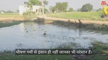 भीषण गर्मी से इंसान ही नहीं जानवर भी परेशान हैं। दिन में सूरज के तेवर देख लोगों के पसीने छूट रहे हैं तो भीषण गर्मी में राहत पाने के लिए पशु-पक्षी भी जतन कर रहे हैं। बदायूं के कुंवरगांव कस्बे में सोमवार को गर्मी से राहत पाने के लिए बंदरों का झुंड तालाब में भरे पानी में उछल कूद करते देखा गया। कुंवरगांव कस्बे में एक जगह तालाब में पानी भरा हुआ है। गर्मी से निजात पाने के लिए बंदरों का एक झुंड वहां पर पहुंच गया। बंदर काफी देर तक पानी में उछल-कूद करते रहे। ग्रामीणों ने इसका वीडियो बना लिया।