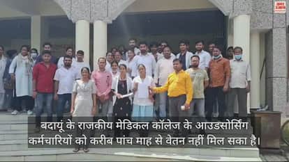 VIDEO : बदायूं के मेडिकल कॉलेज के आउटसोर्सिंग कर्मियों को पांच माह से नहीं मिला वेतन, डीएम को सौंपा ज्ञापन