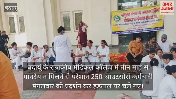 VIDEO : बदायूं के राजकीय मेडिकल कॉलेज में आउटसोर्स स्टाफ की हड़ताल जारी