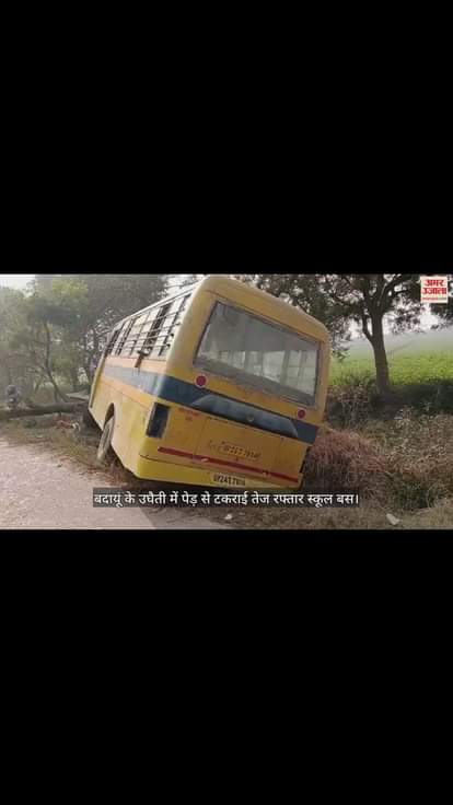 VIDEO : बदायूं के उघैती में पेड़ से टकराई तेज रफ्तार स्कूल बस, बाल-बाल बचे बच्चे