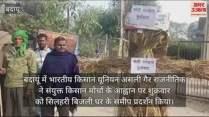 बदायूं में भारतीय किसान यूनियन असली गैर राजनीतिक ने संयुक्त किसान मोर्चा के आह्वान पर शुक्रवार को सिलहरी बिजली घर के समीप प्रदर्शन किया। किसानों ने न्यूनतम समर्थन मूल्य और स्वामीनाथन आयोग की रिपोर्ट लागू न करने एवं बिजली बिल अधिनियम को लेकर केंद्र सरकार का पुतला दहन किया है। भाकियू पदाधिकारियों ने सरकार के खिलाफ जमकर नारेबाजी की। जिलाध्यक्ष केपीएस राठौर ने कहा कि केंद्र सरकार हिटलर शाही रवैया अपना रही है। पंजाब-हरियाणा बॉर्डर पर किसानों को आंदोलन करते करीब 10 से 11 महीना हो चुके हैं, लेकिन केंद्र सरकार ने एक भी बार किसानों से बात नहीं की। जबकि किसान अपना हक न्यूनतम समर्थन मूल्य पर गारंटी कानून बनाने को जोर दे रहे हैं।