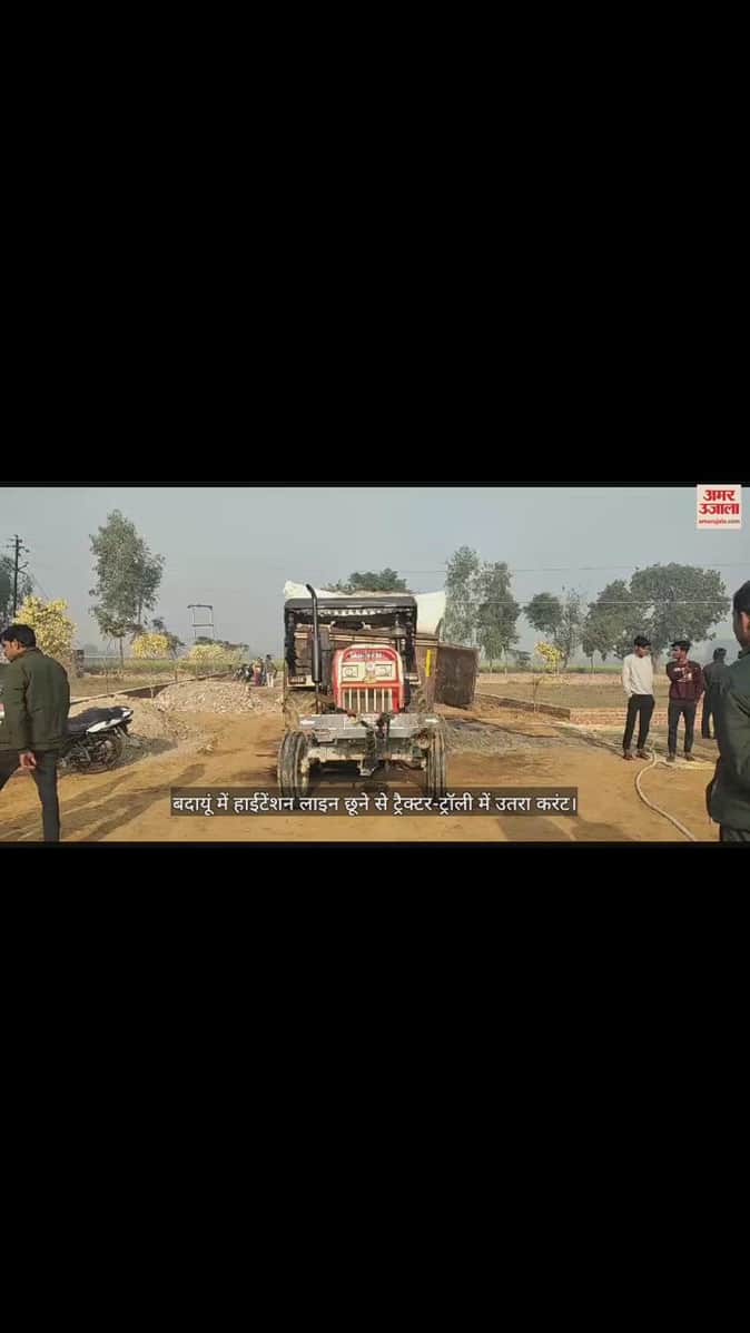 VIDEO : बदायूं में हाईटेंशन लाइन छूने से ट्रैक्टर-ट्रॉली में उतरा करंट, चालक की जिंदा जलकर मौत