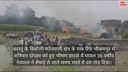 बदायूं के बिसौली कोतवाली क्षेत्र के गांव पैगा भीकमपुर में शनिवार दोपहर को हुए भीषण हादसे में घायल 36 वर्षीय नेत्रपाल ने सैफई ले जाते समय रास्ते में दम तोड़ दिया। नेत्रपाल का इलाज राजकीय मेडिकल कॉलेज में चल रहा था। गंभीर हालत देखकर देर रात उन्हें रेफर कर दिया गया था। उनके शव को पोस्टमार्टम के लिए भेजा गया है। इधर, सड़क हादसे में मरे चार लोगों के शवों का पोस्टमार्टम रात में ही करा दिया गया। रविवार सुबह गांव में एक साथ चार अर्थियां उठीं तो हर किसी की आंखें नम हो गईं। गांव के बाहर अंत्येष्टि स्थल पर चारों मृतकों का अंतिम संस्कार किया गया।