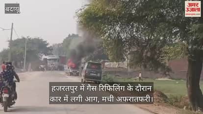 Budaun News: गैस रिफिलिंग के दौरान कार में लगी आग, मची अफरातफरी