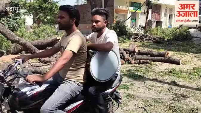 Budaun News: स्टेशन रोड पर गिरा पुराना पेड़, दो गाड़ियां क्षतिग्रस्त, बिजली लाइन टूटी