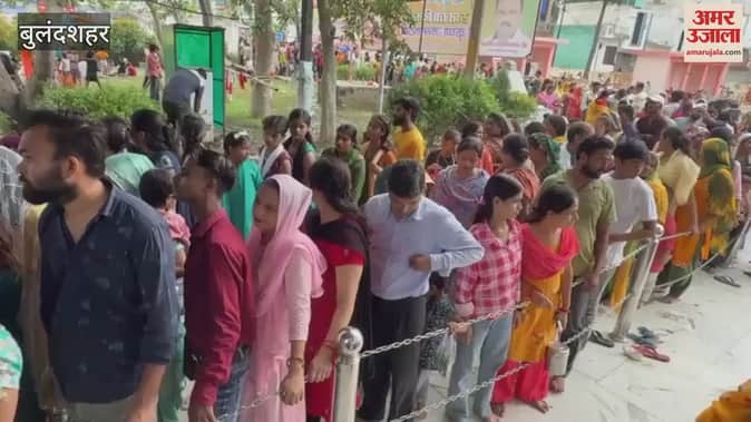 बुलंदशहर के खुर्जा के मंदिर में जलाभिषेक को लगी भक्तों की लाइन