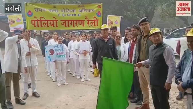 जनपद स्तरीय पल्स पोलियो अभियान के तहत जागरूकता रैली का आयोजन शनिवार को किया गया। प्राथमिक स्वास्थ्य केंद्र, सदर चंदौली से जिलाधिकारी चंद्र मोहन गर्ग एवं पुलिस अधीक्षक आदित्य लांग्हे ने हरी झंडी दिखाकर रैली को रवाना किया। रैली के माध्यम से लोगों को पल्स पोलियो अभियान के महत्व के प्रति जागरूक किया गया तथा शून्य से पांच वर्ष तक के सभी बच्चों को पोलियो की खुराक पिलाने की अपील की गई। अधिकारियों ने कहा कि पोलियो उन्मूलन के लक्ष्य को हासिल करने के लिए समाज के प्रत्येक व्यक्ति की सहभागिता जरूरी है।