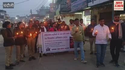 VIDEO : चंदाैली में गूंजा 1090 पर फोन करो महिला हिंसा बंद करो... अभियान के तहत निकाला गया कैंडल मार्च