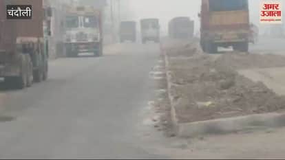 VIDEO : कोहरे के बाद भी चंदाैली की मुख्य सड़कों पर खड़ी हो रहीं ट्रकें, हो सकता है हादसा