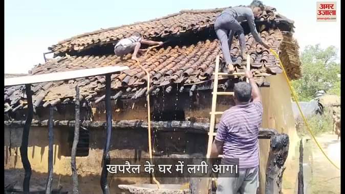 VIDEO : खपरैल के घर में अचानक लगी आग, कड़ी मशक्कत के बाद लोगों ने पाया काबू