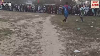 VIDEO : चंदाैली में फुटबॉल प्रतियोगिता, मिर्चा गाजीपुर ने बनारस स्पॉटिंग क्लब को तीन गोल से हराया