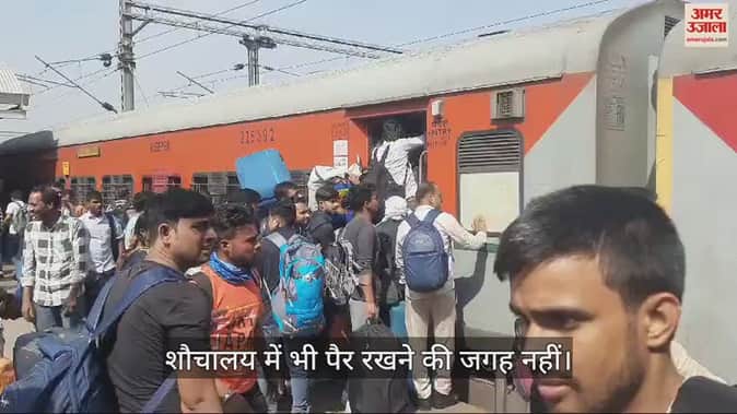 VIDEO : होली में बढ़ी रेल यात्रियों की मुश्किलें, यूपी-बिहार की ट्रेनों में टॉयलेट पर भी कब्जा; पैर रखने तक की जगह नहीं