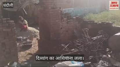 VIDEO : चंदौली में दिव्यांग का आशियाना जला, गृहस्थी का सामान राख, धानापुर थाना क्षेत्र के कुसम्ही गांव की घटना