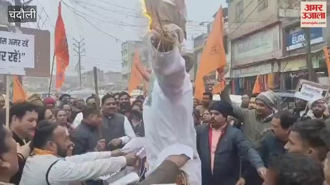 बांग्लादेश में हिंदुओं पर हो रहे कथित अत्याचारों के विरोध में सोमवार को चंदौली में विश्व हिंदू परिषद और बजरंग दल के कार्यकर्ताओं ने जोरदार प्रदर्शन किया। जीटी रोड स्थित काली मंदिर के पास बांग्लादेश की अंतरिम सरकार के प्रमुख का पुतला फूंका गया और कड़ा विरोध दर्ज कराया गया। प्रदर्शन की शुरुआत नगर के कैलाशपुरी शिव मंदिर परिसर से हुई, जो रैली के रूप में जीटी रोड काली मंदिर तक पहुंची। प्रदर्शनकारियों ने सनातन धर्म की रक्षा, हिंदू एकता और बांग्लादेश में अल्पसंख्यक हिंदुओं की सुरक्षा को लेकर नारेबाजी की। इस मौके पर मुगलसराय भाजपा विधायक रमेश जायसवाल ने कहा कि बांग्लादेश में हिंदुओं के साथ हो रहे अत्याचार चिंताजनक हैं और इसे अंतरराष्ट्रीय स्तर पर गंभीरता से उठाया जाना चाहिए। उन्होंने भारत सरकार से अपेक्षा जताई कि वह कूटनीतिक स्तर पर हस्तक्षेप कर वहां रह रहे हिंदुओं की सुरक्षा सुनिश्चित कराए।