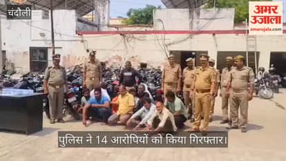 VIDEO: चंदौली में जुए के अड्डे पर पुलिस का छापा, 14 गिरफ्तार