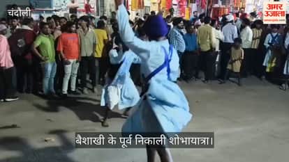 चंदौली में बैसाखी पर्व के उपलक्ष्य में आयोजित तीन दिवसीय कार्यक्रम की शुरुआत रविवार को हुई। पहले दिन रविवार को सिख समाज की ओर से शोभा यात्रा निकाली गई। पंच प्यारे नगर कीर्तन की शोभा बढ़ाते नजर आये। वहीं, पंजाब के तरनतारन से आये राज-ए-खालसा गतका ग्रुप ने हैरतअंगेज करतबों का प्रदर्शन किया। इसे देखकर नगर वासी हैरत में रहे। सिख समाज की ओर से निकाली जाने वाली शोभा यात्रा की तैयारियां पिछले कई दिनों से चल रही थी। नगर में जगह जगह तोरण द्वार बनाए बनाए गए। शाम को लगभग छह बजे नगर स्थित इंडियन इंस्टीट्यूट में सिख समाज की महिलाएं व पुरूष एकत्र होना शुरु हो गये। इसके बाद वहां से शोभा यात्रा निकाली गई। इस दौरान सबसे आगे पांच घोड़ों पर पंच प्यारे शौर्य और वीरता का प्रतीक बन सवार रहे। उसके पीछे बाइक से चल रही युवाओं की टोली ''''जो बोले सो निहाल'''' का जयकारा लगाते रहे।