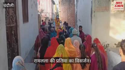 VIDEO : चंदौली में जयकारे के बीच हुआ रामलला की प्रतिमा का विसर्जन