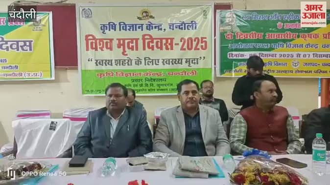 आचार्य नरेंद्र देव कृषि एवं प्रौद्योगिकी विश्वविद्यालय, कुमारगंज अयोध्या द्वारा संचालित कृषि विज्ञान केंद्र चंदौली में पांच दिवसीय फसल अवशेष प्रबंधन प्रशिक्षण का सफल समापन हुआ। इसी अवसर पर केंद्र के सभागार में विश्व मृदा दिवस समारोह का आयोजन किया गया। मुख्य अतिथि वरिष्ठ भाजपा नेता आरपी पांडे ने अपने संबोधन में कहा कि किसान मृदा दिवस पर संकल्प लें कि वे अपनी मिट्टी की जांच कराएं और उसी के आधार पर खेती करें। कृषि विज्ञान केंद्र के वरिष्ठ वैज्ञानिक एवं अध्यक्ष डॉ. नरेंद्र रघुवंशी ने किसानों को बताया कि जिस तरह व्यक्ति अपने स्वास्थ्य का ध्यान रखते हुए नियमित जांच कराता है, उसी प्रकार मिट्टी के स्वास्थ्य की भी नियमित जांच कराना आवश्यक है। केंद्र के अन्य विशेषज्ञों ने भी किसानों को विभिन्न विषयों पर जानकारी दी। डॉ. अभयदीप गौतम ने समसामयिक खेती के बारे में बताया, डॉ. चंदन ने मिट्टी की जांच के महत्व, समय और प्रक्रिया पर प्रकाश डाला, डॉ. अमित सिंह ने प्राकृतिक खेती अपनाने के लिए प्रेरित किया, जबकि उद्यान वैज्ञानिक मनीष सिंह ने फल, फूल, सब्जी और पौधों की देखभाल के बारे में विस्तृत जानकारी दी। कार्यक्रम में उप कृषि निदेशक भीमसेन, जिला उद्यान अधिकारी, जिला कृषि अधिकारी एवं कृषि विज्ञान केंद्र के सभी वैज्ञानिक उपस्थित थे। समारोह में 150 से अधिक महिला एवं पुरुष कृषक प्रतिभाग किए। कार्यक्रम का उद्देश्य किसानों में मिट्टी के स्वास्थ्य के प्रति जागरूकता बढ़ाना और सतत खेती के आधुनिक तरीकों को अपनाने के लिए प्रेरित करना था।