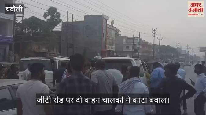 VIDEO : चंदौली जीटी रोड पर वाहन चालकों के बीच हंगामा, मौके पर भीड़ जमा हुई