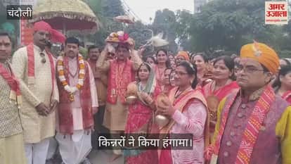 चंदौली में किन्नरों ने चौराहे पर किया हंगामा, VIDEO