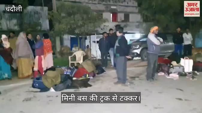 VIDEO : चंदौली में ट्रक बस की टक्कर, दो की मौत दस घायल, मची चीख पुकार, घायलों को अस्पताल ले जाया गया
