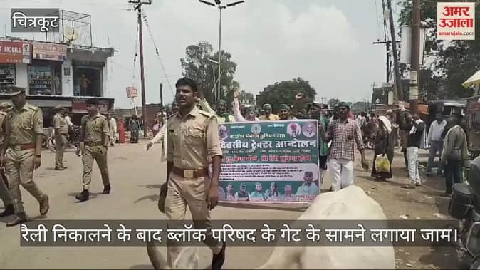 चित्रकूट में विभिन्न मांगों को लेकर भारतीय किसान यूनियन ने पहाड़ी ब्लाक परिषद के सामने प्रदर्शन किया। ट्रैक्टर से आए किसानों ने रैली निकाली। इसके बाद ब्लॉक परिषद के गेट के सामने ट्रैक्टर लगाकर जाम लगा दिया।