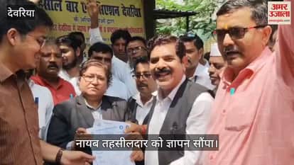 तहसील बार एसोसिएशन देवरिया के अधिवक्ताओं ने तहसीलदार कृष्णाकुमार मिश्रा के स्थानांतरण को लेकर मंगलवार को भी तहसील परिसर में धरना दिया। के समर्थन में उत्तर प्रदेश बर काउंसिल की को चेयरमैन मधुलिका यादव भी धरने में पहुंची। तहसील बार एसोसिएशन के अध्यक्ष सामंत कुमार मिश्र और पूर्व अध्यक्ष युगल किशोर तिवारी के साथ नायब तहसीलदार रत्नेश यादव को ज्ञापन सौपा।