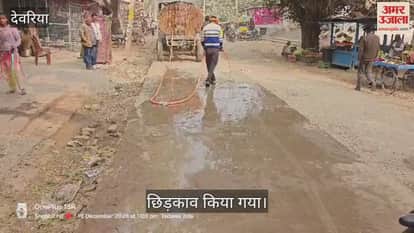 खुखुंदू कस्बे उड़ रही धूल से मिली राहत, सड़क पर पानी का हुआ छिड़काव