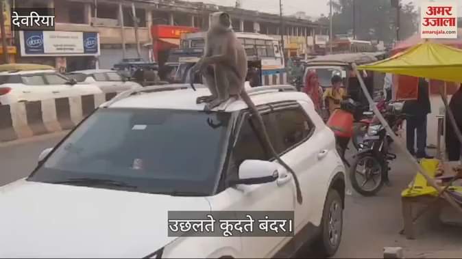 VIDEO : बंदरों ने कार पर चढ़ आधे घंटे तक किया रास्ता जाम, उछल-कूद से सहमें रहे लोग