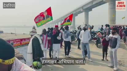मोहन सेतु काम पूरा कराने की मांग को लेकर सपा ने चलाया हस्ताक्षर अभियान