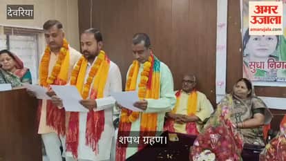 रुद्रपुर के रामजी सहाय पीजी कॉलेज के सभागार में शासन द्वारा नामित सभासदों को नगर पंचायत की अध्यक्ष सुधा निगम ने पद का शपथ दिलाई। इस अवसर पर नामित सभासद दिलीप जायसवाल, मथुरा पांडे और तेज प्रताप गुप्त ने शपथ लिया। इस दौरान विधायक जयप्रकाश निषाद, पूर्व अध्यक्ष छोटेलाल निगम, सुभाष चंद्र मद्धेशिया, ईओ नितेश गौरव, अंतर्यामी सिंह, महेश मणि, जितेंद्र गुप्ता, संगम धर द्विवेदी आदि मौजूद रहे।