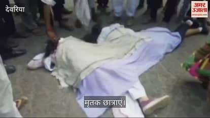 VIDEO : Two girl students died in a road accident in Deoria, the accident happened while going to school.
