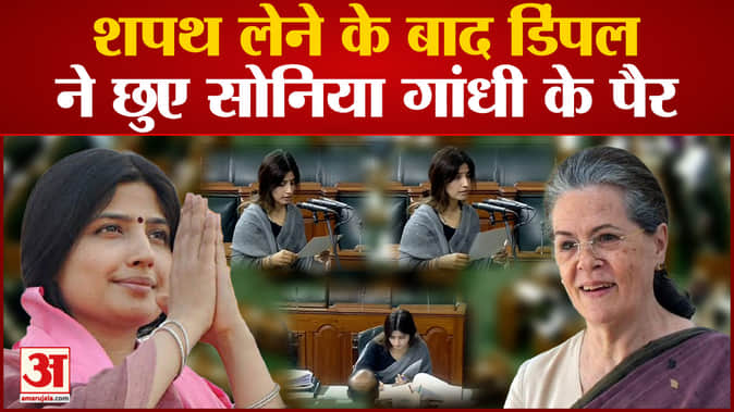 सांसद पद की शपथ लेने के बाद डिंपल यादव ने छुए सोनिया गांधी पैर