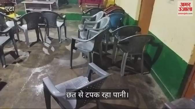 VIDEO : अलीगंज के बीआरसी भवन में पानी ही पानी...टपक रहीं छतें, पन्नी बांधकर चला रहे काम