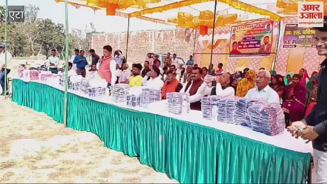 एटा में राष्ट्रीय ग्रामीण साक्षरता मिशन के तहत बच्चों को ड्रेस, स्कूल बैग आदि का निशुल्क वितरण किया गया। कार्यक्रम में मुख्य अतिथि के रूप में शामिल हुए सदर विधायक विपिन वर्मा डेविड का स्वागत किया गया। मुख्य अतिथि की ओर से बच्चों का उत्सावर्धन किया गया।