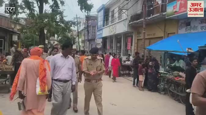 VIDEO: कैलाश मंदिर एटा पर उमड़ रही भक्तों की भीड़, चप्पे-चप्पे पर पुलिस की नजर